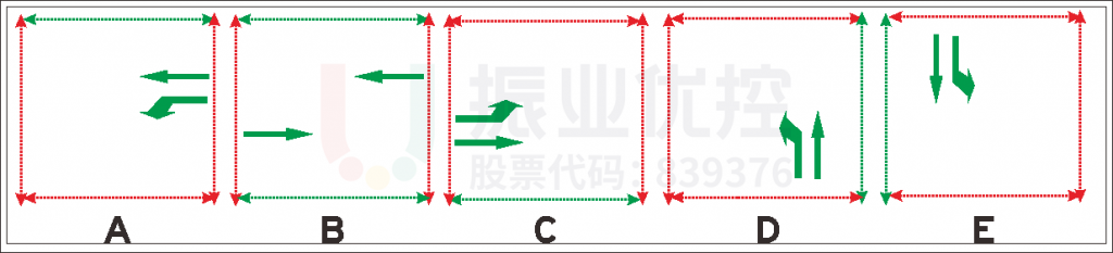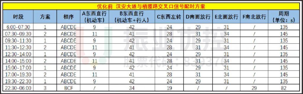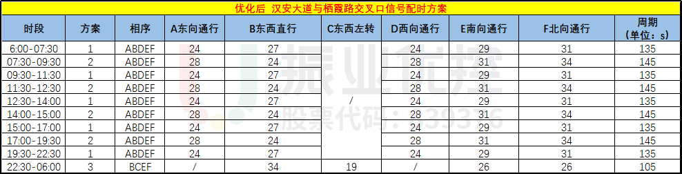 在可變車道實施之前,交叉口東西進口方向直行和左轉分開單獨放行,導致東進口左轉排隊較長。對此采取搭接一個東進口單獨放行相位,保障方案實施后車輛進入可變車道后能夠及時清空,以及左轉車流的通行安全。