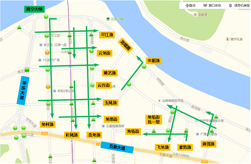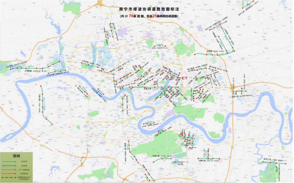 對(duì)江北大道和五一路等10條道路實(shí)施“綠波帶”道路優(yōu)化,道路通行時(shí)間平均縮短32.2%,行車速度平均提高31.6%。截至目前,南寧共設(shè)計(jì)實(shí)施了88條綠波協(xié)調(diào)道路,涉及291個(gè)路口,綠波協(xié)調(diào)控制里程突破145公里,并探索出五種協(xié)調(diào)控制模式,有效提高道路通行能力,極大方便了群眾出行。