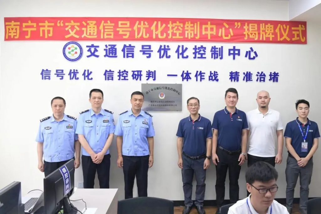 2022年6月22日,廣西首個(gè)交通信號(hào)優(yōu)化控制中心在南寧市公安局交通警察支隊(duì)正式揭牌。南寧市公安局交通警察支隊(duì)政委孫志宇、副支隊(duì)長(zhǎng)羅建東、指揮中心主任陳茜、科研所所長(zhǎng)李子龍、廣東振業(yè)優(yōu)控科技股份有限公司副總裁/研究院院長(zhǎng)洪波、交通技術(shù)部副總監(jiān)陳宇等人參加了揭牌儀式。