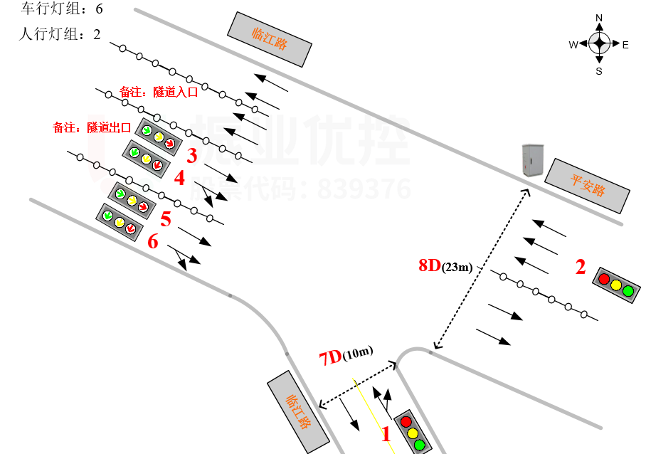 平安路與臨江路路口位于內江市東興區(qū)西林大橋東北側,由東西走向的平安路(西進出口雙向8車道,東進出口雙向5車道)與南北走向的臨江路(雙向2車道)交叉組成,周邊分布有大千廣場、福都廣場、居民小區(qū)、酒店、商場等,是機動車、非機動車及行人過街主要匯聚點。