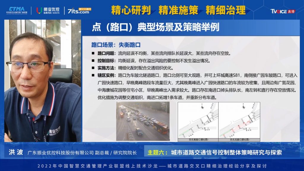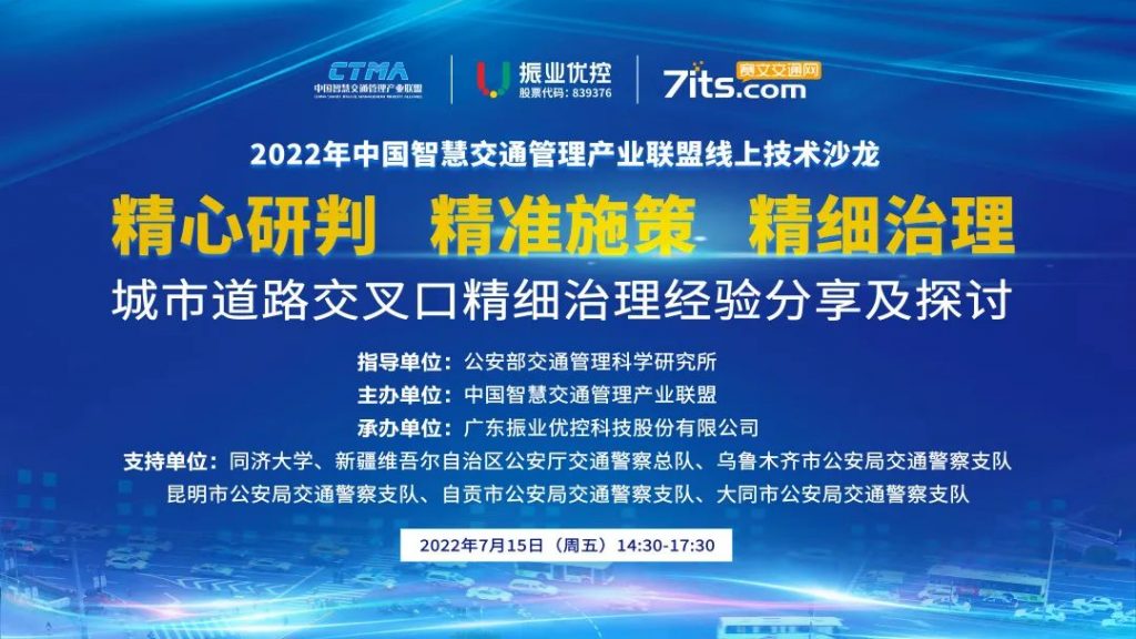 2022年7月15日,由公安部交通管理科學研究所(以下簡稱“交科所”)指導,中國智慧交通管理產(chǎn)業(yè)聯(lián)盟(以下簡稱“產(chǎn)業(yè)聯(lián)盟”)主辦,產(chǎn)業(yè)聯(lián)盟交通規(guī)劃與設計組組長單位廣東振業(yè)優(yōu)控科技股份有限公司(以下簡稱“振業(yè)優(yōu)控”)承辦,主題為“精心研判 精準施策 精細治理”的城市道路交叉口精細治理經(jīng)驗分享及探討線上技術沙龍在賽文直播平臺成功舉辦。