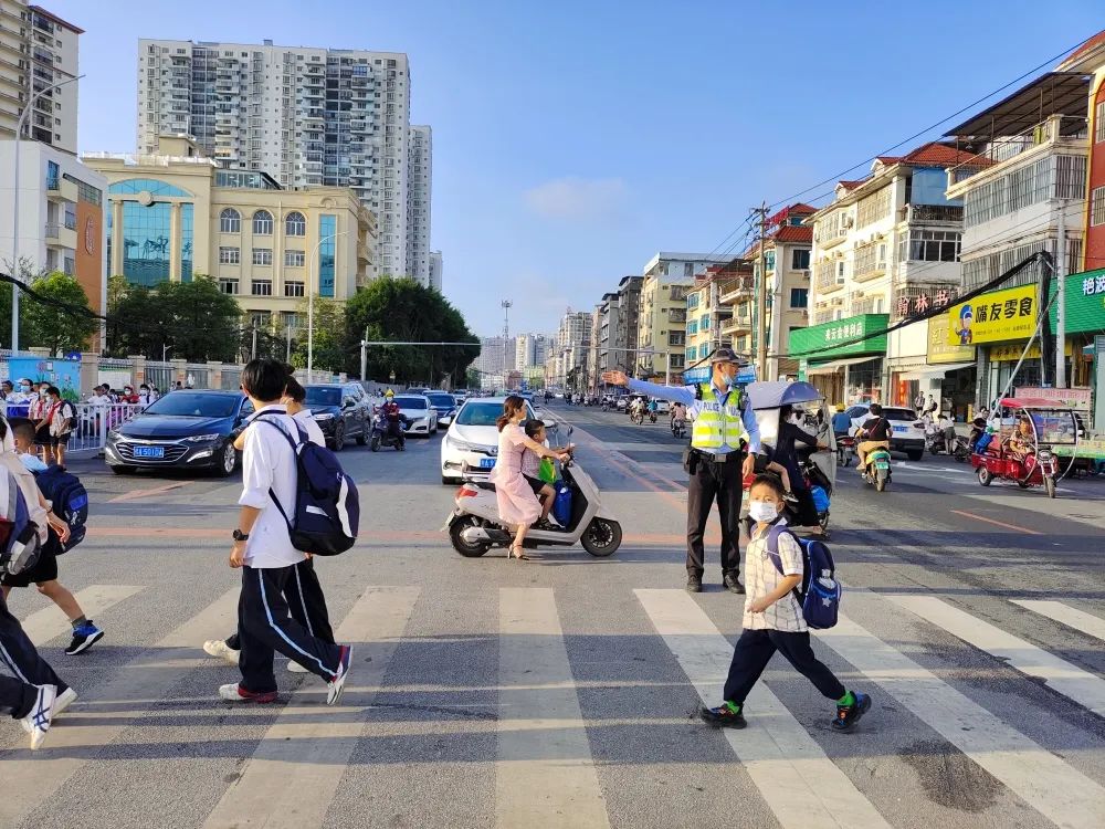 開學(xué)季期間,南寧交警根據(jù)各轄區(qū)中學(xué)校門前道路交通情況,合理安排警力,加強(qiáng)對(duì)位于主干道路邊、交通流量大、接送學(xué)生車輛多、容易造成交通擁堵的中學(xué),在學(xué)生上、下學(xué)交通高峰時(shí)段和重點(diǎn)路段加大執(zhí)勤力度,對(duì)接送學(xué)生家長及過往車輛進(jìn)行疏導(dǎo),有效確保校園周邊道路交通安全有序。