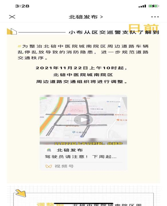 (2)優(yōu)化道路條件:中醫(yī)院西門處道路連通公交站一同擴寬,由原雙向兩車道改為單向三車道,大大提高通行效率。