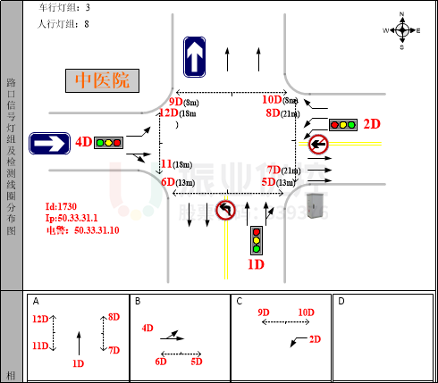 由于將軍路改為單行,關閉了東直行,南左轉(zhuǎn)信號燈,重新設置精細化配時方案,優(yōu)先保障中醫(yī)院大門方向車輛通行,提高中醫(yī)院周邊整體交通運行效果。