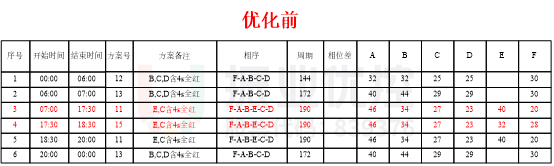方案7:00至18:30時段方案單一,早高峰時段方案跟平峰時段方案一致,不能滿足各時段車流變化情況,導(dǎo)致各時段存在擁堵現(xiàn)象。