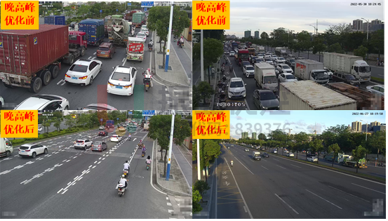 優(yōu)化后,晚高峰東進口出城及早晚高峰金鳳西路進城車輛的排隊長度減少,左轉(zhuǎn)車道飽和度下降40%,路口通行效率明顯提升。路口早晚高峰時段整體擁堵指數(shù)下降4.01%,通行速度提升3%。