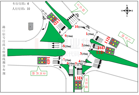 安居路鄰近金科、金茂等四個小區(qū)及水產(chǎn)品交易中心,隨著各小區(qū)入住居民的增加,晚高峰時段左轉(zhuǎn)前往金鳳西路及安居路車流增大?,F(xiàn)有的一條左轉(zhuǎn)車道已處于超飽和狀態(tài),導(dǎo)致東進口左轉(zhuǎn)車輛存在多次排隊,擁堵嚴重。