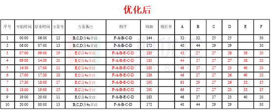 綜合路口全時段各進口流量情況,精細化路口早、平、晚及夜間時段方案,提高路口各進口通行效率。