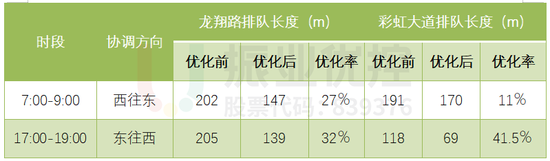 經(jīng)優(yōu)化后,晚高峰世紀大道-彩虹大道東進口與世紀大道-龍翔路早高峰排隊長度明顯降低,路口擁堵情況改善明顯。