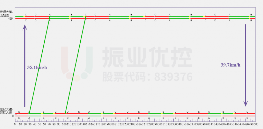 針對這種情況,可以通過對距離較短的路口,實現(xiàn)短距離路口協(xié)調(diào);通過綠波軟件工具,計算其相位差,實現(xiàn)高峰期短協(xié)調(diào),達到減少車流排隊、防止車流溢出的同時,提高行車體驗的目標。
