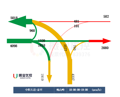 中陽泰星路口東往西方向隨著道路施工完畢,交通條件得到改善,東往西車流量明顯增加,原來的配時方案已無法滿足車流量的變化,晚高峰東往西方向存在明顯擁堵,車輛需排隊4-5次通過路口。