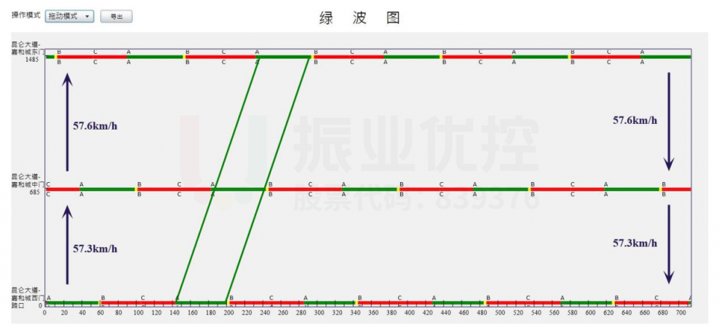 因該路段主要行車方向早高峰為東往西進城方向,其他時段為西往東出城方向,且路段無特殊管控需求,可根據(jù)市民出行需求設置綠波協(xié)調(diào)方案。