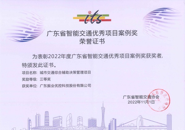 “2022年度廣東省智能交通優(yōu)秀項目案例獎”作為表彰在廣東省智能交通發(fā)展中做出突出貢獻的單位或團體的獎項,此次獲獎意味著振業(yè)優(yōu)控的技術(shù)研究能力與水平、“城市交通綜合輔助決策管理項目”再獲專業(yè)肯定。