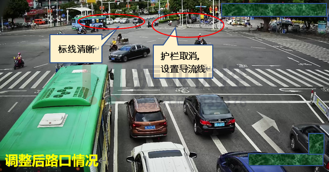 通過交通組織多項優(yōu)化,提高了路口整體通行能力,改善高峰期間擁堵情況。