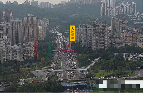 人和立交位于重慶市兩江新區(qū),連接五條主干道、四條支路及二條快速路,是聯(lián)通南北區(qū)域的重要通道。其中,人和立交橋至大坡隧道范圍日常交通通行量巨大,給周邊路段和路口帶來了巨大交通壓力。