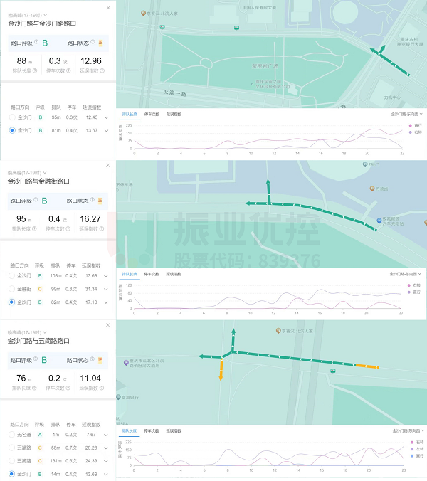 以金沙門路為例,由于該路段各路口間距較短且路口間缺少聯(lián)動控制,東向西方向擁堵嚴(yán)重,尤其是金沙門路-精學(xué)街路口,原配時方案無法滿足車輛通行需求,大量繞行車輛堆積在路口。