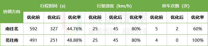 平峰時段,路段進行雙向協(xié)調(diào),南北雙向總計停車兩次通過。