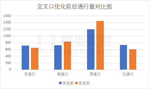 交叉口總通行量為3553pcu/h,相比優(yōu)化前的3324pcu/h,提升了6.9%。西進(jìn)口通行量由1206pcu/h提高至1452pcu/h ,提升了20.3%;排隊長度由700米縮短至400米,縮短了43%。