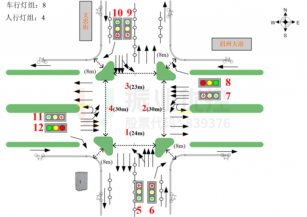 為緩解交叉口擁堵,眉山公安交警組織振業(yè)優(yōu)控眉山優(yōu)控中心及四川路橋 ,根據(jù)路面占道施工情況,一是通過調(diào)整交叉口西進(jìn)口車道配置,提高車道利用率;二是結(jié)合交叉口實際運行情況,通過調(diào)整放行方式,減少直行機(jī)動車與左轉(zhuǎn)非機(jī)動車之間的相互影響,提升通行秩序。