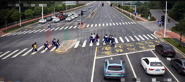 韶冶實驗學校路口上下學期間,學生過街需求大,綜合研判路口車流量并在不影響通行效率的情況下,在該時段增加全人行相位,有效保障學生安全通過路口。