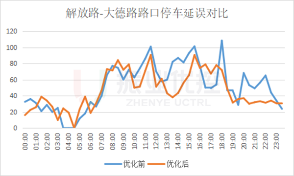 優(yōu)化后,南進(jìn)口排隊(duì)情況明顯好轉(zhuǎn),晚高峰南往北方向擁堵緩解,最大排隊(duì)長度由460米下降到286米,優(yōu)化率達(dá)37.8%;停車延誤由108.5秒下降到71.94秒,優(yōu)化率達(dá)33.7%。