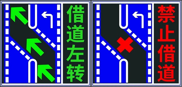 利用南出口道空間資源,設置“借道左轉”區(qū)域及相應的指示屏,引導南左轉車流在特定的時間利用“借道左轉”區(qū)域通過路口。