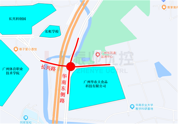 華南東側路-長興路路口位于廣州市天河區(qū),附近學校、居民區(qū)眾多,日常南北行流量較大,尤其是早晚高峰,經(jīng)路口上下班人車流量較多。