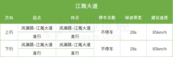(1)鳳瀾路綠波雙向不停車,綠波帶寬38s,建議速度35km/h。