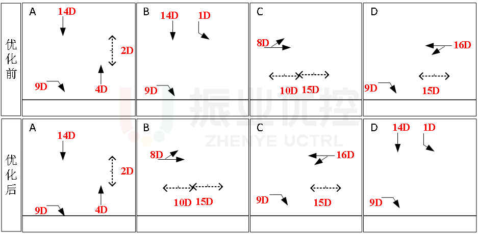 根據(jù)路段協(xié)調(diào)需求,對金開大道-鴛鴦北路、金開大道-龍帆路、金開大道-湖津支路等路口的相位相序進行調(diào)整。