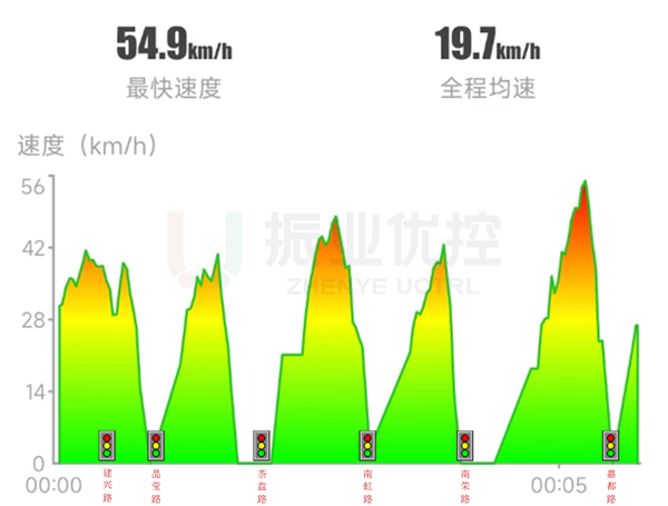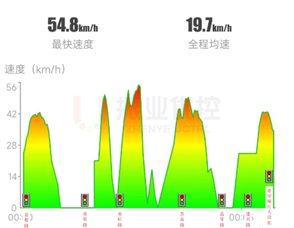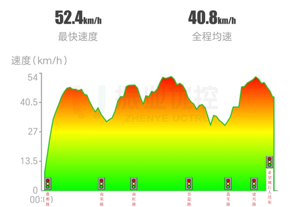 嘉南路雙向平均行程時(shí)間由5分鐘50秒縮短至2分40秒,平均通行速度由19.7km/h提升到41.2km/h,平均停車次數(shù)由4次變?yōu)椴煌\囃ㄟ^,通行效率得到大幅提升。