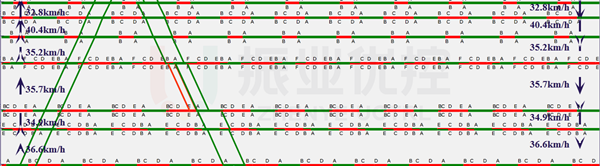 調(diào)整相位相序是綠波協(xié)調(diào)中比較常見的措施,特別是在道路條件較好、干擾較小,適合做綠波協(xié)調(diào)設(shè)計(jì)的主干道。通過減少支路綠燈空放,主流向相位搭接等方式調(diào)配綠信比和相位差,使得車輛能夠一路不停車通過各個(gè)路口,減少通行延誤。
