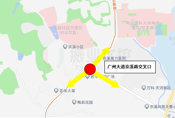 廣州大道京溪路T字交叉口位于廣州白云區(qū),由廣州大道與京溪路相交而成,是白云區(qū)、天河區(qū)、越秀區(qū)三區(qū)互通的關(guān)鍵交叉口。