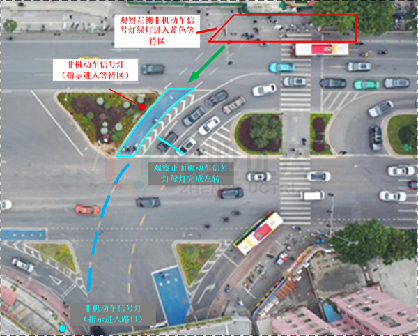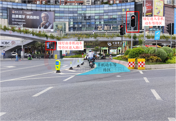 關(guān)鍵詞:非機(jī)動(dòng)車待行區(qū)、非機(jī)動(dòng)車信號(hào)燈、車道功能調(diào)整