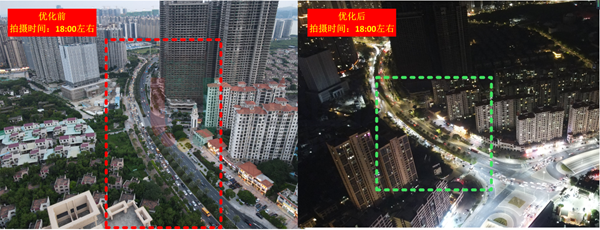 南進(jìn)口排隊長度由700米降至300米,排隊長度下降約57%;西進(jìn)口排隊長度由原500米降至200米,排隊長度下降約60%。
