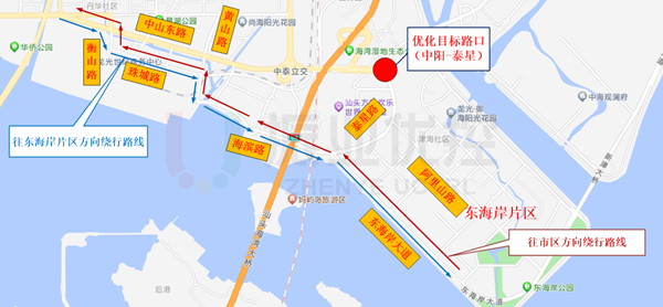 通過汕頭廣播電臺及高德、百度導(dǎo)航平臺等,對早晚高峰市區(qū)往返東海岸片區(qū)車流進(jìn)行分流引導(dǎo),往海濱路、珠城路、泰星路繞行。