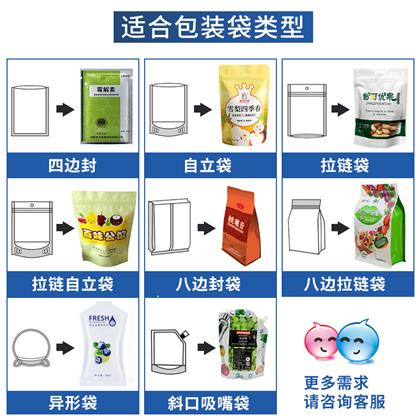 膨化食品(如:薯片、鍋巴),各類堅(jiān)果、休閑食品、速凍食品、糖果、種子、寵物食品等各類顆粒狀、球狀、塊狀不規(guī)則物料。